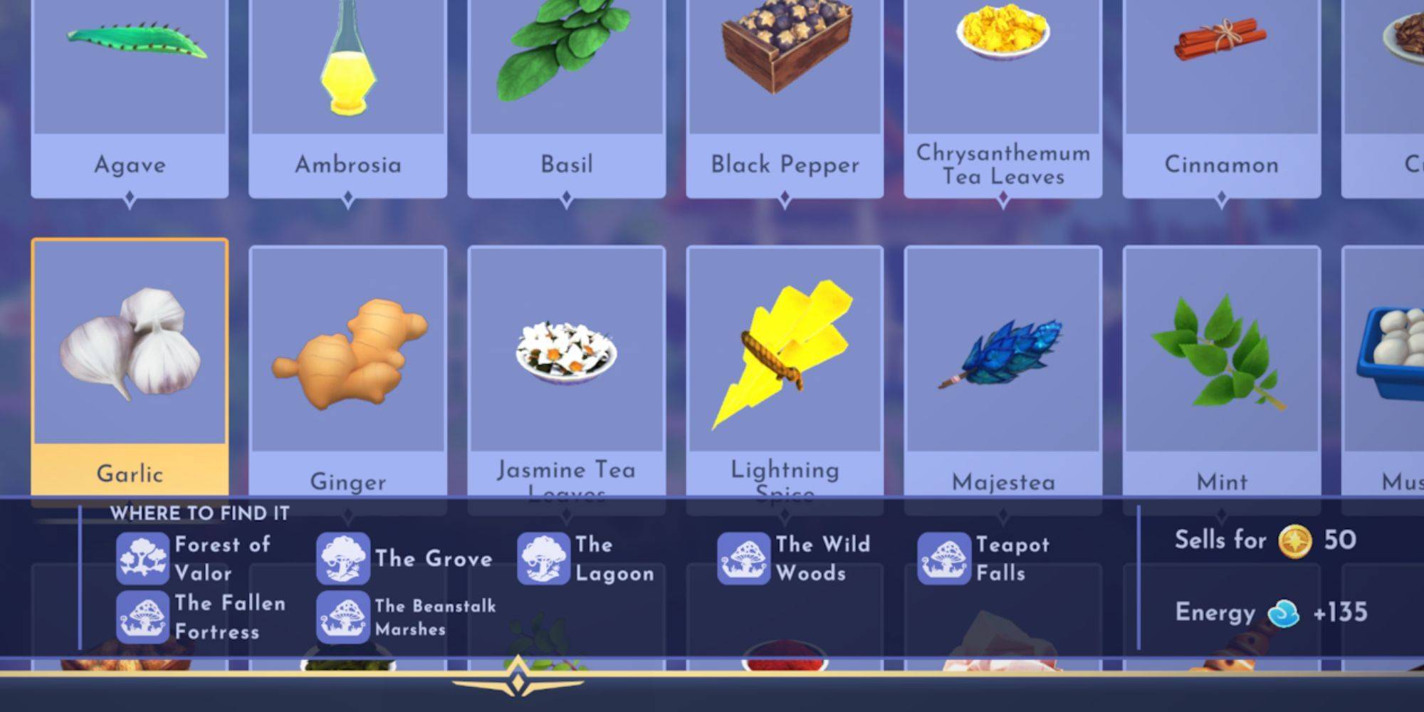 - Any Spice (e.g., Lightning Spice from Elysian Fields, Garlic from Wild Woods)