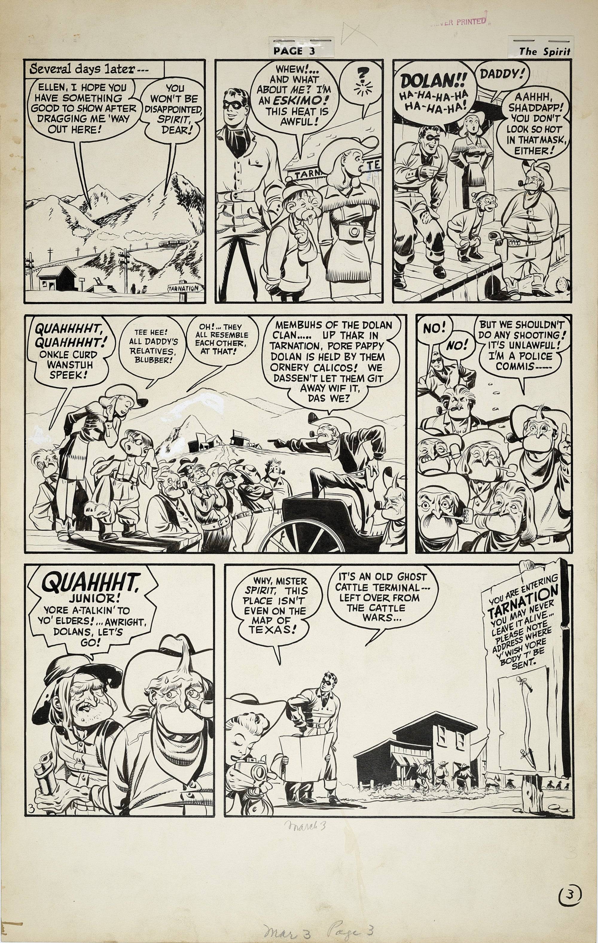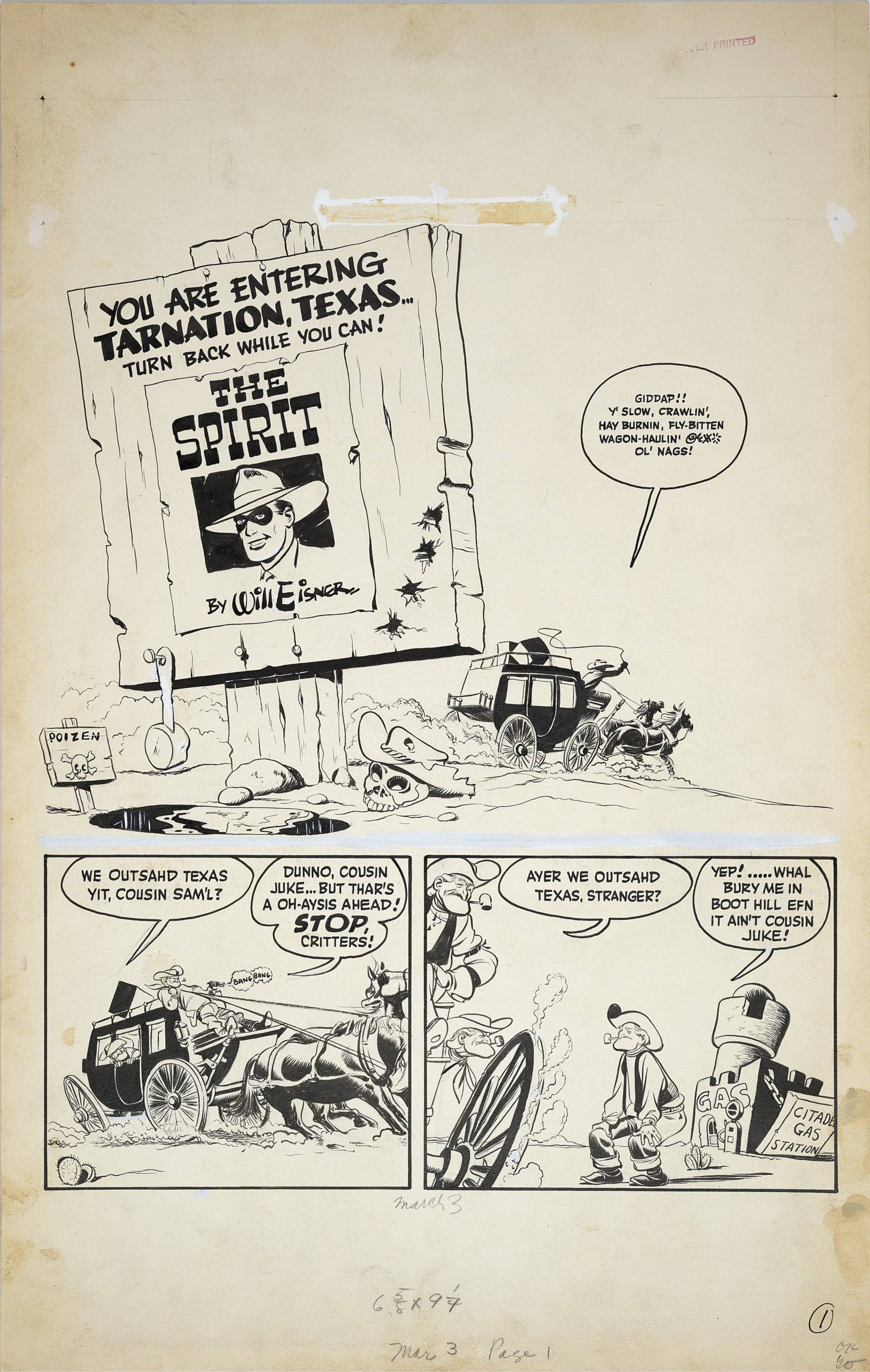 Below is a sneak peek at some original Spirit pages from the "Tarnation" story featured in the exhibition: