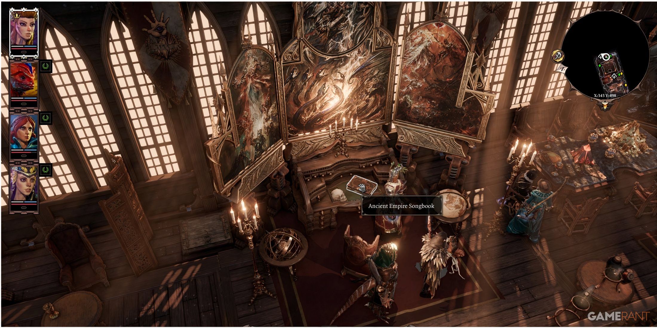 Inside Dallis' cabin, speak to Tarquin and Dallis. Locate the Ancient Empire Songbook on a pedestal. Reading it reveals the song needed to move the ship. Speak to all NPCs before proceeding, as interaction will be unavailable once the ship sails.