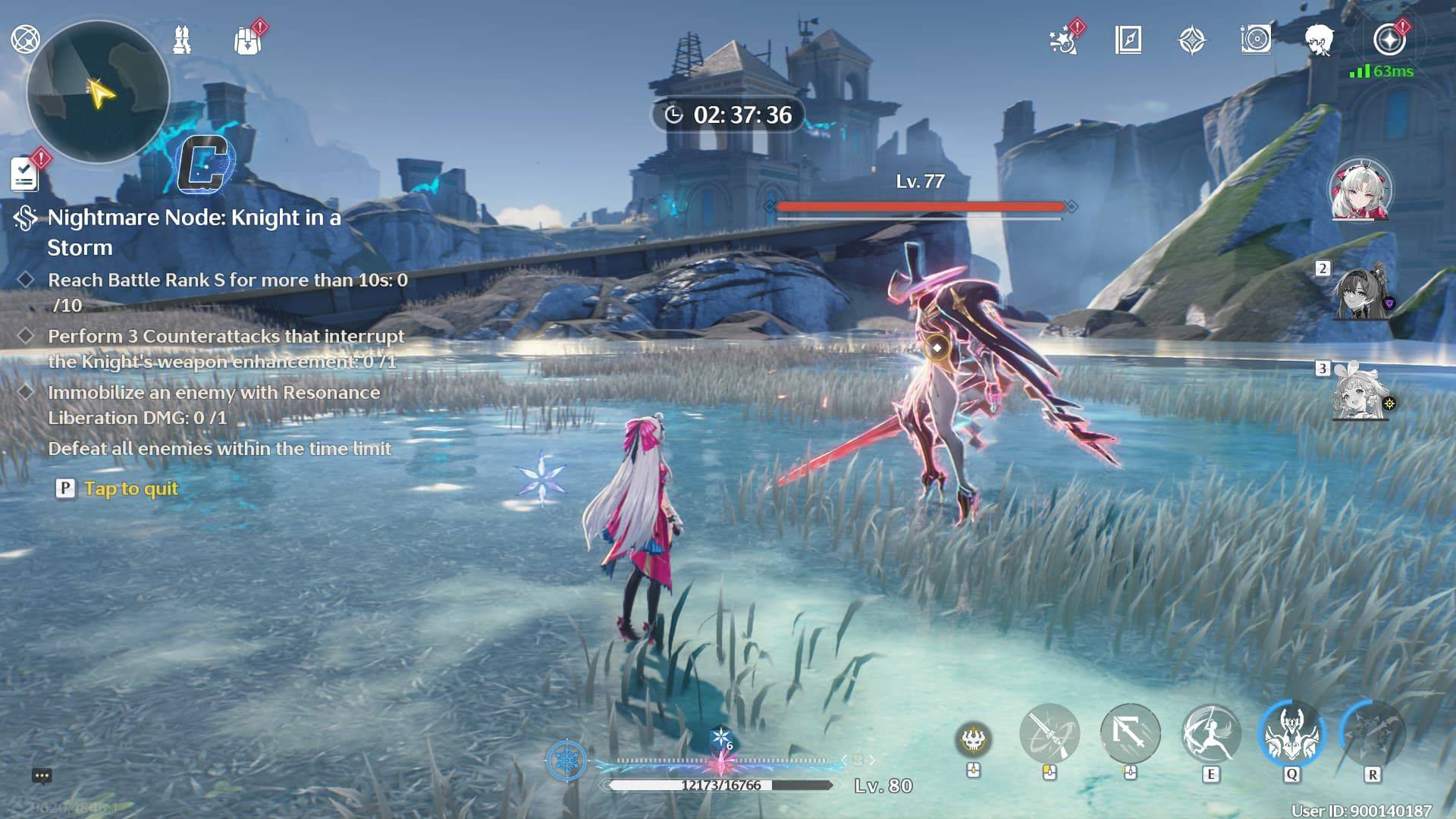 - Имбилизируйте врага с помощью резонансного освобождения DMG: Огромный рыцарь, используя окончательную способность вашего персонажа (истощение белого бара под его здоровьем).
